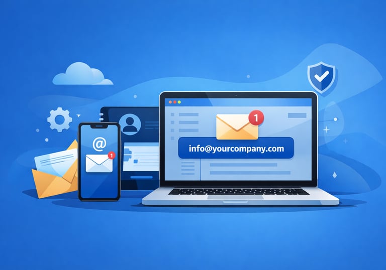 Create professional, branded email IDs like info@yourcompany.com to build trust and credibility. We set up secure, domain-based email accounts with easy access across mobile and desktop devices.